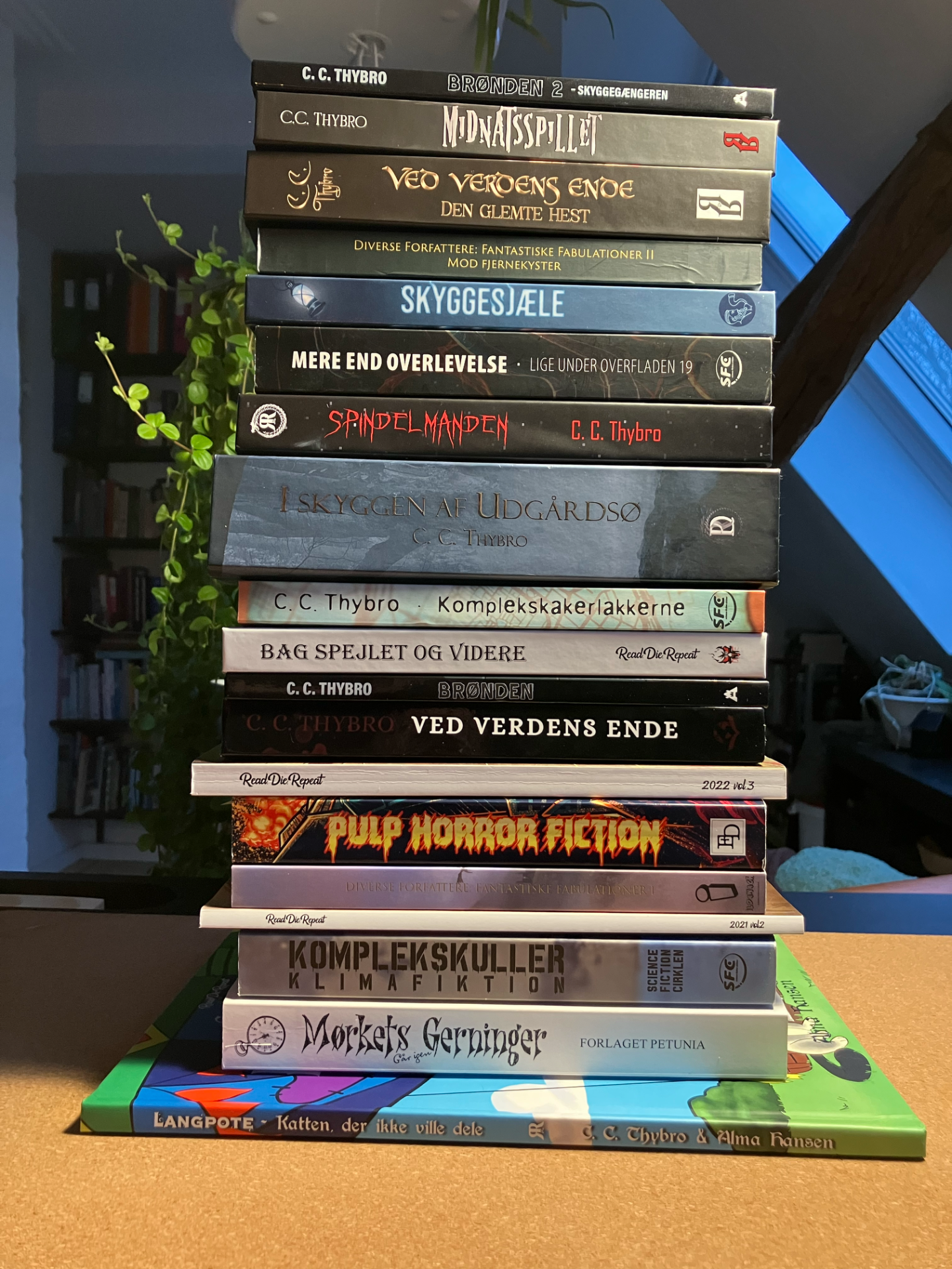 Oversigt over mine udgivelser, der spænder alt fra noveller til børnebøger til YA og videre til voksenbøger.